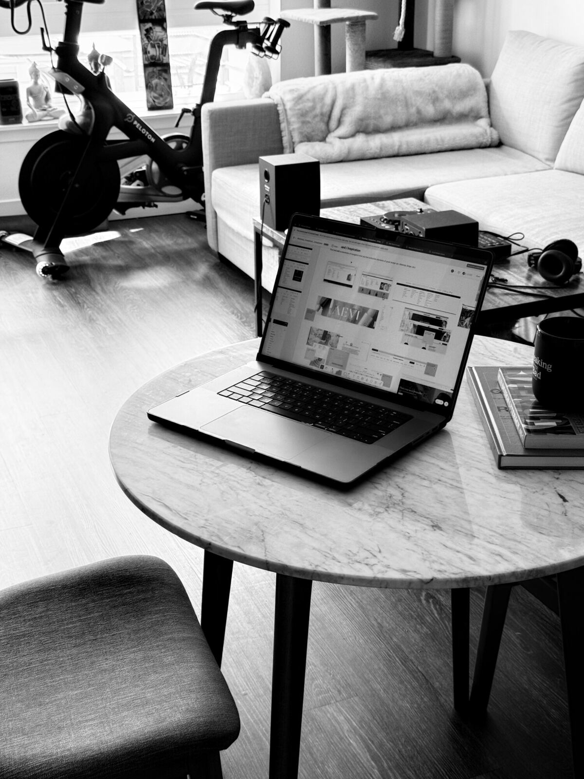 Home base. The studio runs out of a quiet corner — a desk, a laptop, and the long hours that go into building something from zero.